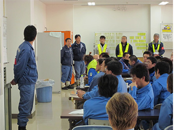 毎日の朝礼では、現業課長から当日の作業内容の説明がなされます。