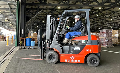 倉庫内作業での電気フォークリフトの導入率は40%超え、順次導入台数を増やす予定です。