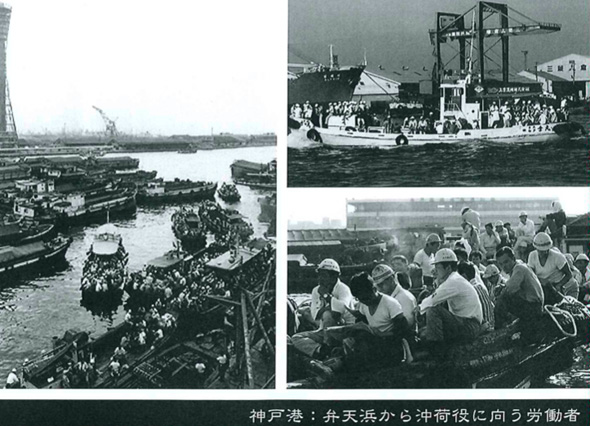 「神戸港における荷役の中心地であった、此処、波止場町(弁天浜・国産波止場)での先達港湾労働者の生きざまや仕事ぶりを後世に語り継ぐとともに、波止場町から新たな港、新たな街づくりの未来を発信し、考えていく」など、自分たちの街のルーツ、仕事のルーツをたどり、記録する、地域貢献活動を行っております。